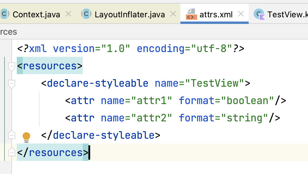 看刚才定义的declare-styleable生成如下: