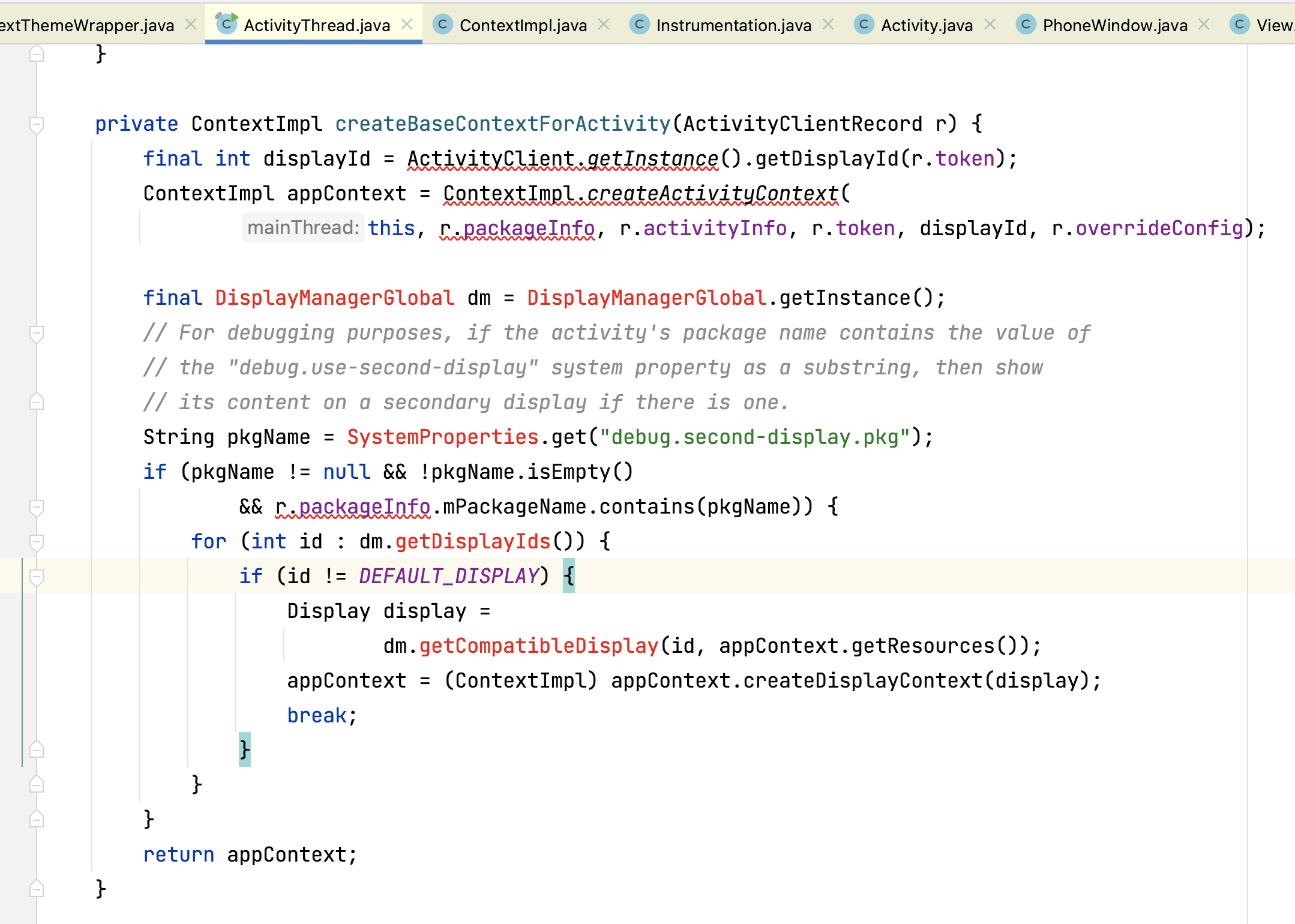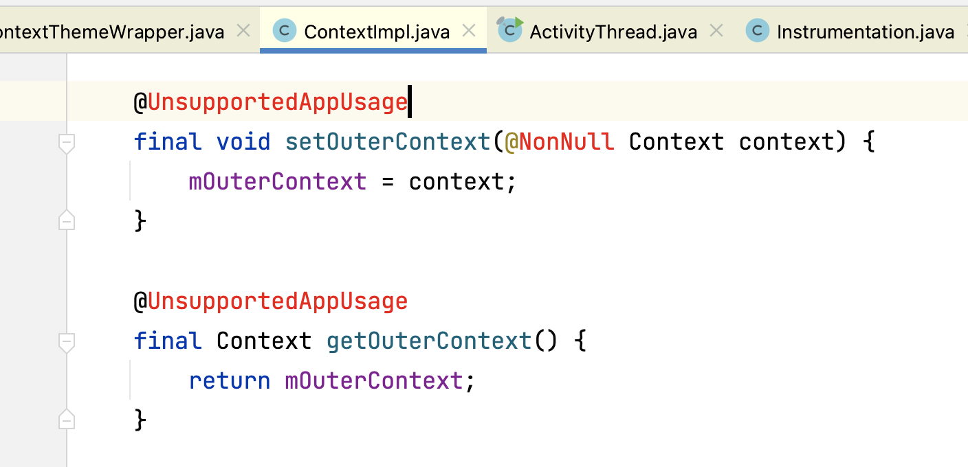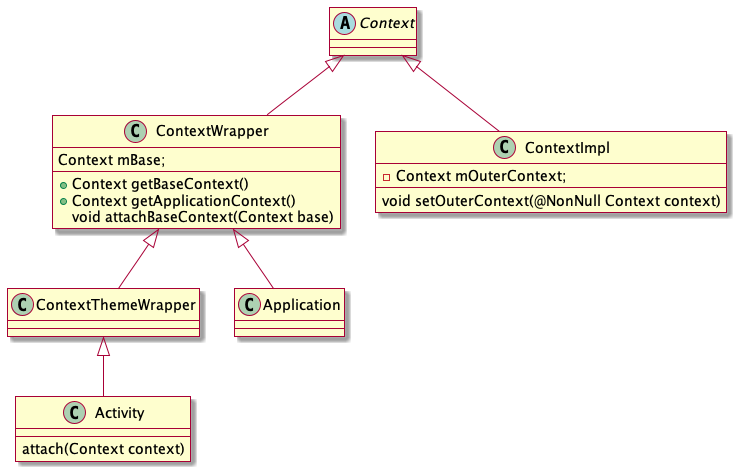 Activity继承自ContextThemeWrapper,ContextThemeWrapper继承自ContextWrapper,当activity创建的之前,会先创建ContextImpl,我们可以在ActivityThread.performLaunchActivity中找到ContextImpl的创建: