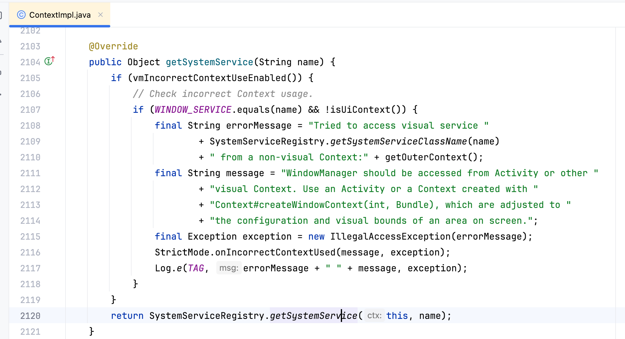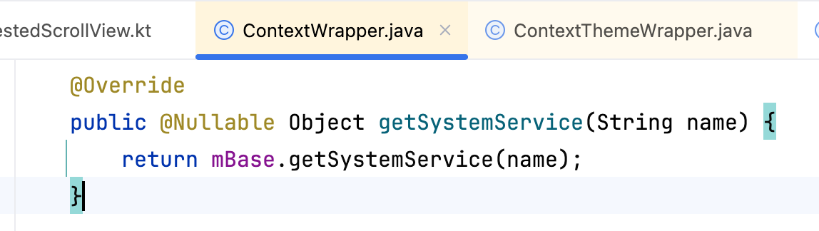 此处的context一般是activity,看activity.getSystemService方法,activity是继承自ContextThemeWrapper,所以会调用ContextThemeWrapper的getSystemService: