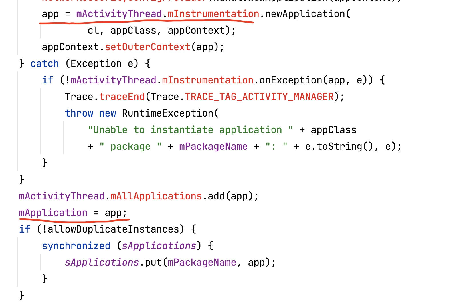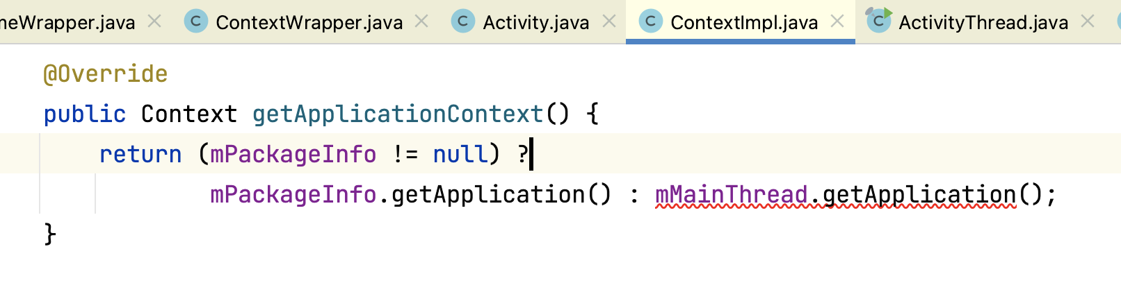 mPackageInfo是在创建contextImpl的时候传入的,它是loadedApk对象,它的getApplication方法是获取应用的Application对象: