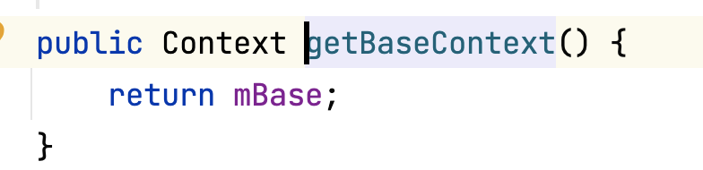 该方法是ContextWrapper中的方法,并指向了mBase变量。Activity中getBaseContext和getApplicationContext区别: