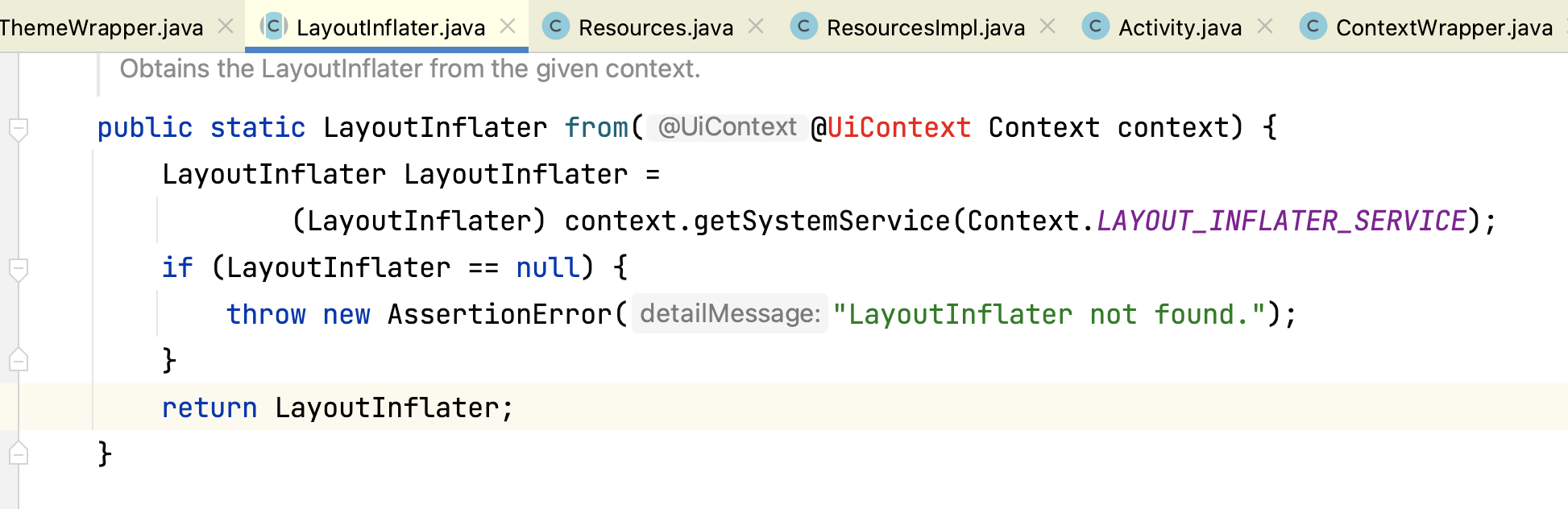 LayoutInflater中的context
