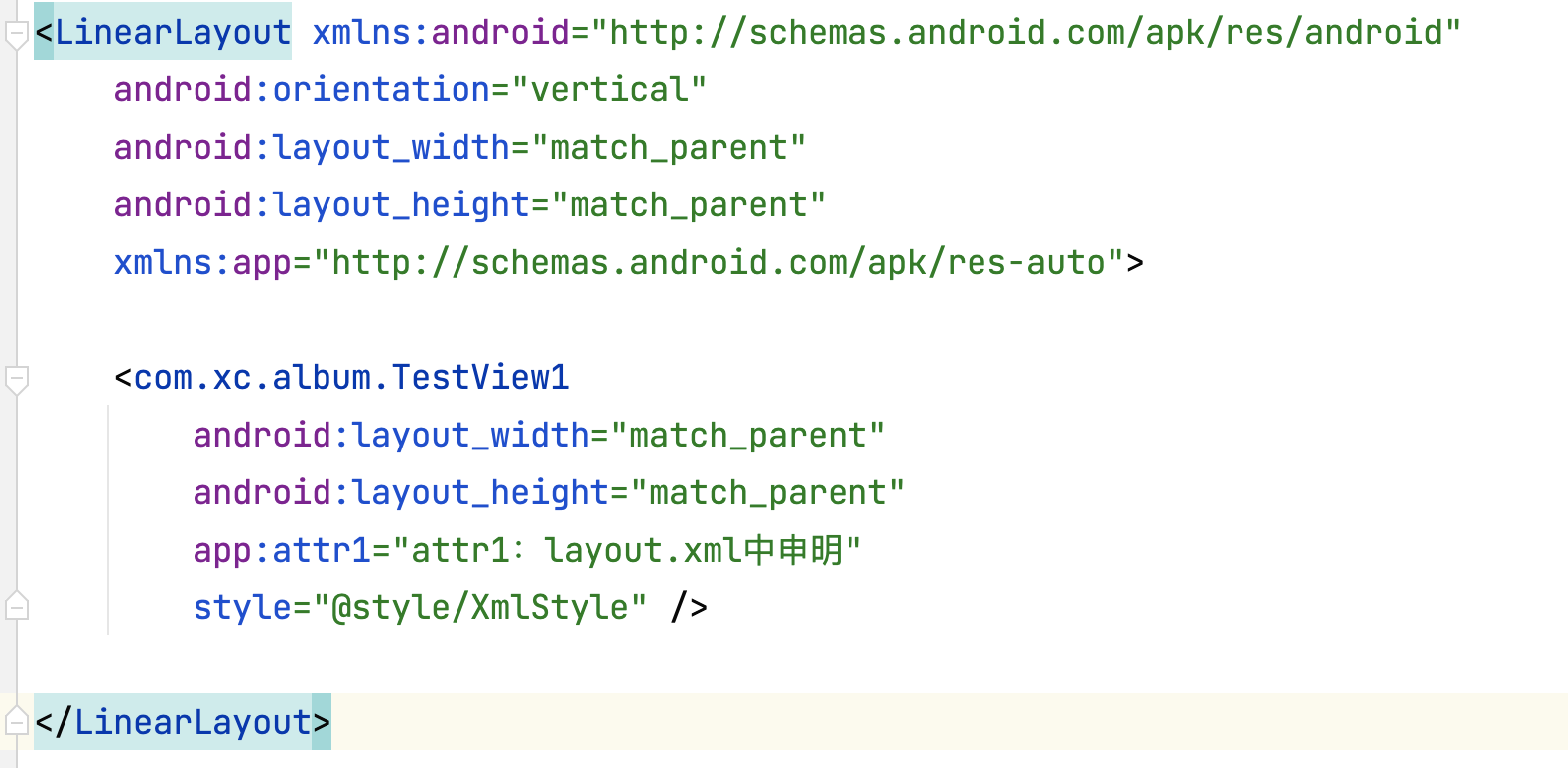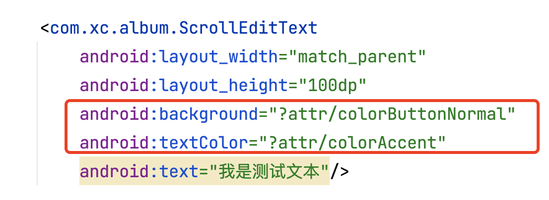 TestView1中defStyleAttr传入R.attr.attr11,defStyleRes传入R.style.DefStyleRes。 布局文件如下: