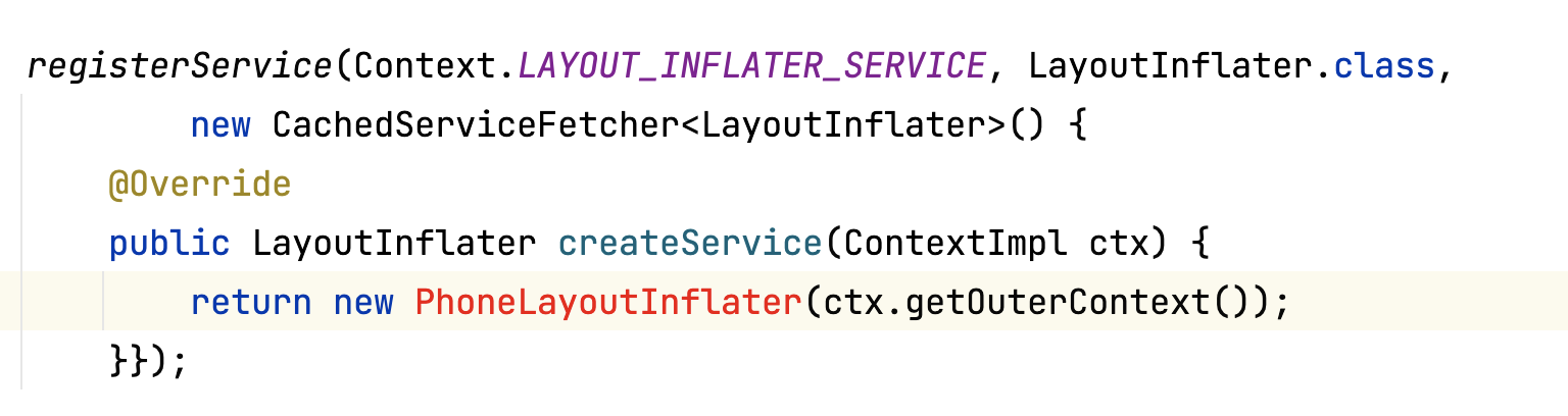 最终是在此处添加了一个PhoneLayoutInflater对象,并把contextImpl.getOuterContext传进去了,此处传进去的是Activity或者是application对象。