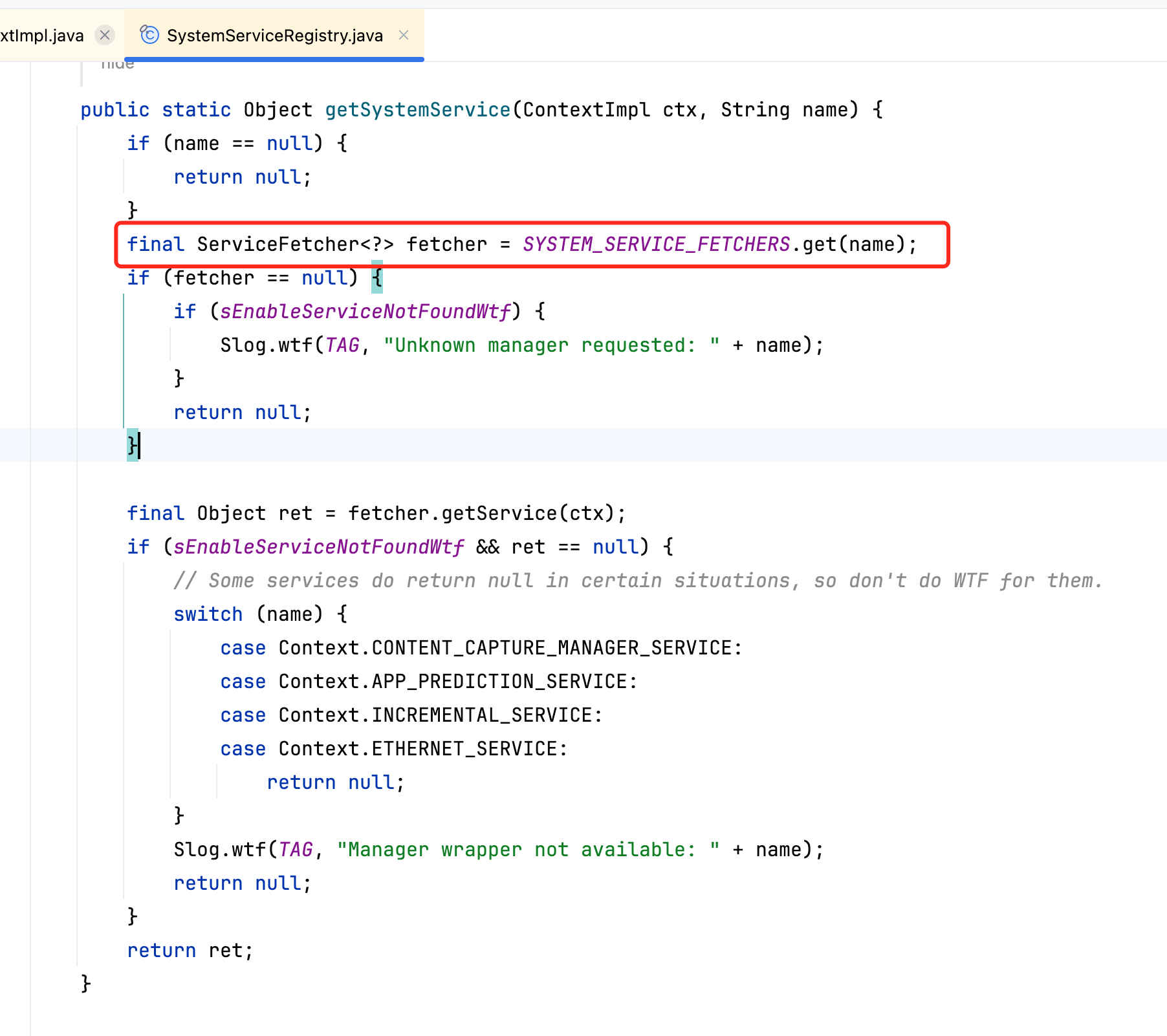 从SYSTEM_SERVICE_FETCHERS中获取: