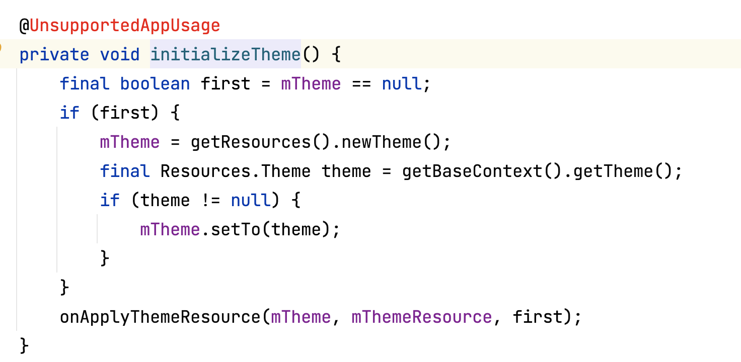 将theme的resid传进来,最终会把resid这个theme追加到mTheme上。这里牵扯到资源加载,后面再说。